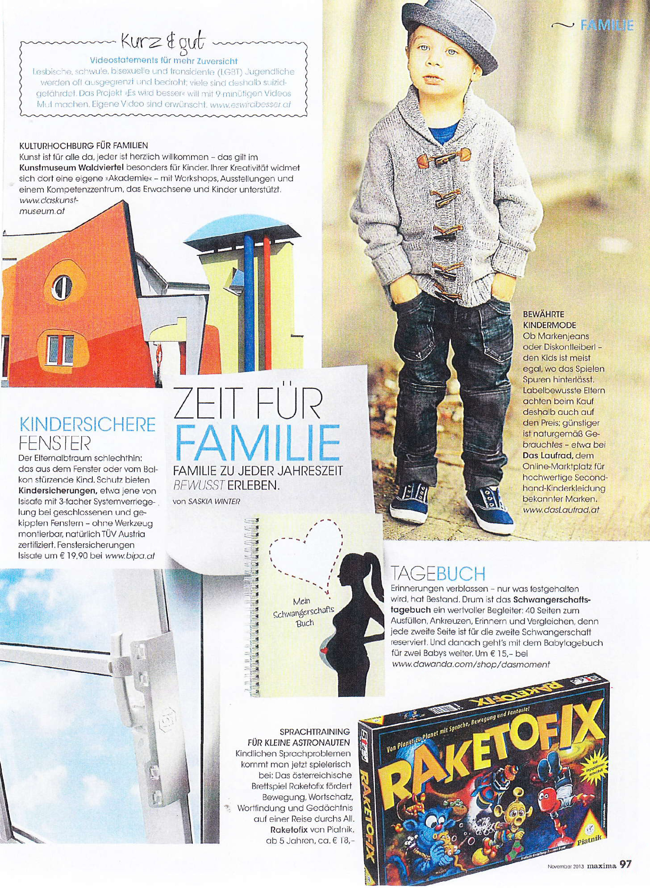 Diese Woche erreichte mich ein sehr tolles Mail. Das Schwangerschaftstagebuch für zwei Schwangerschaften hat es in die Presse geschafft. Genauer gesagt in die Maxima von November 2013. Es ist immer wieder aufs Neue toll, wenn eigene Ideen so großen Anklang finden.
