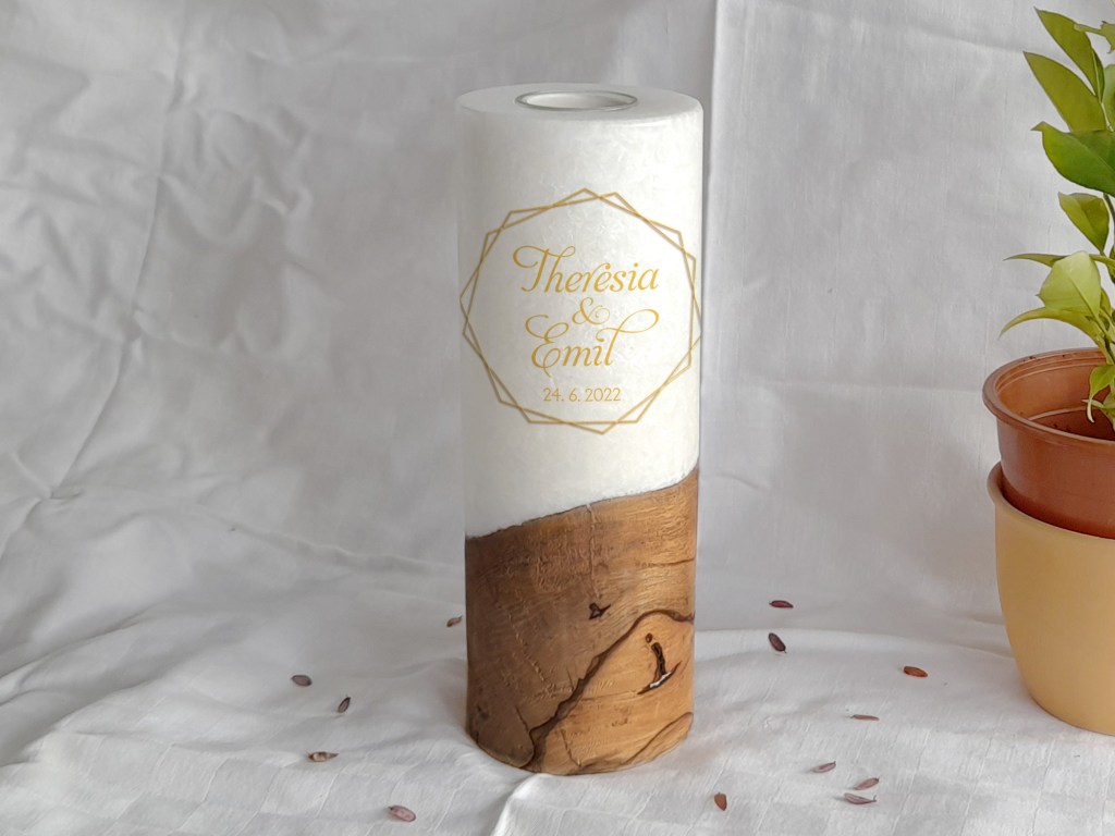 In letzter Zeit hat sich einiges getan. So wird das Sortiment um Hochzeitskerzen Stück für Stück erweitert. Daher freut es micht, dass wir ab sofort Hochzeitskerzen mit Holzeinsatz anbieten.