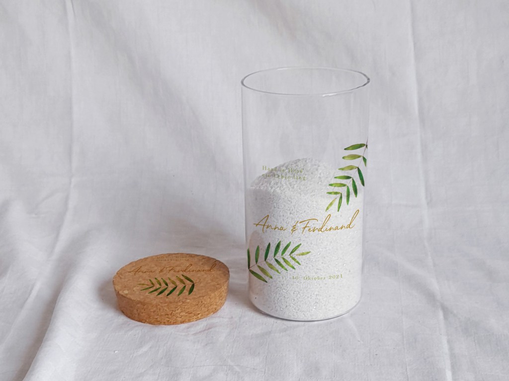 Die Sandzeremonie ist ein moderner Brauch bei dem zwei Herzen mithilfe des Sands zeigen, dass sie ab nun nicht mehr zu trennen sind, so wie die Sandkörner im Glas. Diese Zeremonie wird auch gerne verwendet, wenn zwei Familien heiraten. Dann dürfen auch die Kinder Sand in das Glas streuen. Jeder in seiner eigenen Farbe. So ergibt sich ein wunderbares Bild, das immer an den Tag und das Versprechen erinnert.
