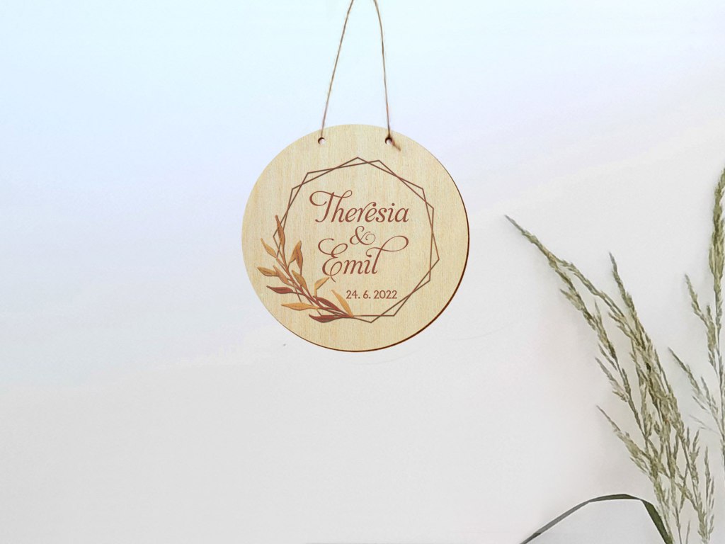 Holzschild – 19 cm Durchmesser, zwei Löcher zum Aufhängen zu € 17,–